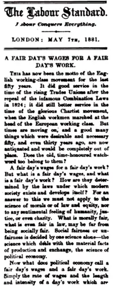 - "A Fair Day's Wages for a Fair Day's Work" Fredrick Engels No. 1 7 May 1881