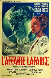 The Lafarge Case (French: L'Affaire Lafarge) is a 1938 French historical crime film directed by Pierre Chenal and starring Pierre Renoir, Marcelle Chantal and Raymond Rouleau.[1] It recalls a famous nineteenth century case, and is mostly portrayed in flashback.[2]