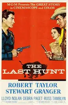 The Last Hunt is a 1956 American Western film directed by Richard Brooks and starring Robert Taylor and Stewart Granger, with Lloyd Nolan, Debra Paget and Russ Tamblyn. It was produced by Dore Schary at Metro-Goldwyn-Mayer. The screenplay was by Richard Brooks from the novel The Last Hunt, by Milton Lott. The music score was by Daniele Amfitheatrof and the cinematography by Russell Harlan.