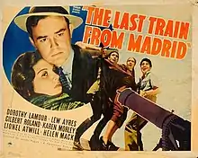 The Last Train from Madrid is a 1937 American war drama film directed by James P. Hogan and starring Dorothy Lamour, Lew Ayres and Gilbert Roland. It is set during the Spanish Civil War.[1] The film was one of the few contemporary Hollywood films made about the war.[2]