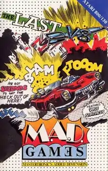 The Last V8 is a racing game published by Mastertronic on their M.A.D. label. It was released in 1985 for the Commodore 64, Commodore 128, Atari 8-bit family, and Amstrad CPC.[1] The player controls a futuristic car in an uninhabited post-apocalyptic scenario. The title echoes a plot point from the Mad Max series of movies[2] The design was done by Richard Darling and the programming by David Darling. The graphics are by Jim Wilson and music by Rob Hubbard.[3]