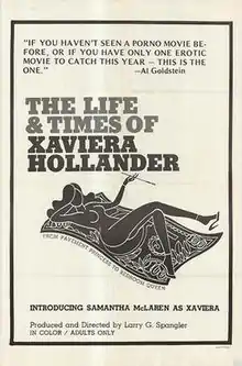 The Life and Times of Xaviera Hollander (also known as The Life and Times of the Happy Hooker, Inside Xaviera Hollander) is a 1974 American pornographic comedy film produced and directed by Larry G. Spangler. Based on the memoir The Happy Hooker by Xaviera Hollander, the film stars Samantha McLaren as Hollander, a Dutch immigrant who became a well-known call girl and eventual madam.