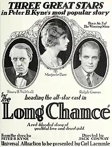 The Long Chance is a 1922 American silent Western film directed by Jack Conway and starring Henry B. Walthall, Marjorie Daw and Ralph Graves.[1]