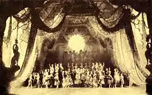 The ballet was first presented by the Imperial Ballet on February 21, 1886, at the Imperial Mariinsky Theatre in St. Petersburg, Russia. The ballet was presented in honor of the inauguration of the Mariinsky Theatre as the Imperial Ballet and Opera's principal venue in 1886 and was the first ballet performed in the theatre. Principal dancer Varvara Nikitina performed the leading role.[1]