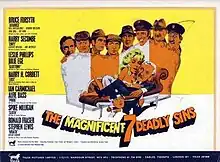 The Magnificent Seven Deadly Sins is a 1971 British sketch comedy film directed and produced by Graham Stark. Its title is a conflation of The Magnificent Seven and the seven deadly sins. It comprises a sequence of seven sketches, each representing a sin and written by an array of British comedy-writing talent, including Graham Chapman, Spike Milligan, Barry Cryer and Galton and Simpson. The sketches are linked by animation sequences overseen by Bob Godfrey's animation studio. The music score is by British jazz musician Roy Budd, cinematography by Harvey Harrison and editing by Rod Nelson-Keys and Roy Piper. It was produced by Tigon Pictures and distributed in the U.K. by Tigon Film Distributors Ltd.