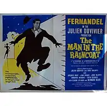 The Man in the Raincoat (French: L'Homme à l'imperméable) is a French-Italian comedy-thriller film directed by Julien Duvivier, scripted by the director and René Barjavel, from the 1954 novel Tiger by the Tail by James Hadley Chase. It was released in 1957[1] and shown at the 7th Berlin International Film Festival in competition for the Golden Bear. It stars Fernandel, (with whom Duvivier had made two successful Don Camillo films earlier in the 1950s), and Bernard Blier.