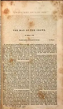 "The Man of the Crowd" is a short story by American writer Edgar Allan Poe about a nameless narrator following a man through a crowded London. It was first published in 1840.
