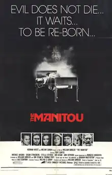 The Manitou is a 1978 American supernatural body horror film produced and directed by William Girdler. It stars Tony Curtis, Michael Ansara and Susan Strasberg. It is based on the 1976 novel of the same name by Graham Masterton, which was inspired by the concept of manitou in Native American theology, believed to be a spiritual and fundamental life force by members of the Algonquian peoples.