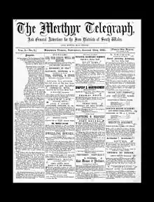 The Merthyr Telegraph and General Advertiser for the Iron Districts of South Wales (established in 1855 by Peter Williams) was a weekly publication distributed in the iron-producing areas of South Wales. It contained mainly local news and information.[1]