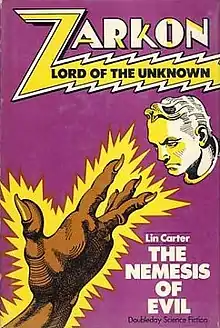 The Nemesis of Evil is a science fiction novel by American writer Lin Carter, the first in his "Zarkon, Lord of the Unknown" series. It was first published in hardcover by Doubleday in 1975, with a paperback edition following from Popular Library in March 1978. It was reissued by Wildside Press in 1999. An ebook edition was issued by Thunderchild Publishing in August 2017.[1]