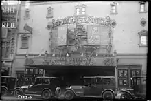 Belasco's lease was again scheduled for renewal in 1910, and he renamed the theater yet again that July.[96] The 42nd Street theater became the Republic, while the 44th Street theater became the Belasco.[96][97] The renamed theater's first production was Bobby Burnit, which opened in August 1910.[96][98] The New York City government announced the same year that it would widen 42nd Street, requiring that the Republic Theatre's stoop be demolished.[99][22] Around that time, Hammerstein also indicated his intent to sell the theater.[100] The Republic hosted the plays Rebecca of Sunnybrook Farm in 1910,[101][102] The Woman in 1911,[103][104] and The Governor's Lady in 1912;[105][106] all of these shows lasted for several months.[62] In January 1914, Belasco leased the Republic to the Universal Film Company for use as a cinema.[77][107] Hammerstein, who feared that people would boycott the theater, sued Belasco,[108] claiming that the lease only permitted Belasco to use the theater for "first-class theatrical performances".[107][108]