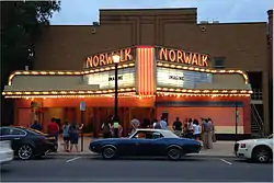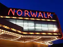The Norwalk Theatre is a historic theatre building located at 57 East Main Street in Norwalk, Ohio. It is owned by the Norwalk Arts Center, LLC,[1] and is a textbook example of the pre-World War II Art Deco style of architecture. Designed by the noted theatre architect John Eberson, the theatre was completed in 1941.[2] It features a porcelain enamel and brick facade and the largest marquee in the state of Ohio.[3] It was listed on the National Register of Historic Places in 2022.[4]