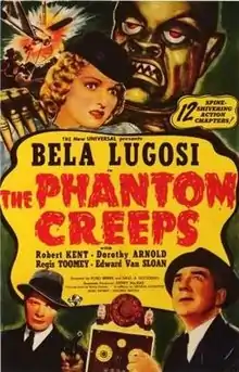 The Phantom Creeps is a 1939 12-chapter science fiction horror serial starring Bela Lugosi as mad scientist Doctor Zorka, who attempts to rule the world by creating various elaborate inventions. In a dramatic fashion, foreign agents and G-Men try to seize the inventions for themselves.[1]