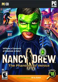 The Phantom of Venice is the 18th installment in the Nancy Drew point-and-click adventure game series by Her Interactive. The game is available for play on Microsoft Windows platforms. It has an ESRB rating of E for moments of mild violence and peril. Players take on the first-person view of fictional amateur sleuth Nancy Drew and must solve the mystery through interrogation of suspects, solving puzzles, and discovering clues. There are two levels of gameplay, Junior and Senior detective modes, each offering a different difficulty level of puzzles and hints, however neither of these changes affect the actual plot of the game. The game is loosely based on a book of the same name The Phantom of Venice (1985).[1][2]