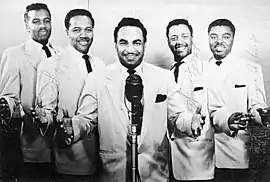 The Philharmonics were a versatile African-American vocal quintet from Springfield, Missouri who became successful despite origins in a then-racially-intolerant town and era. They were at their peak in the 1950s and performed across the United States. The group could adapt to many styles of music from gospel, rhythm and blues and pop to country and Western. They had splendid harmony, choreography, a colorful wardrobe and an impeccable stage presence.