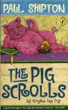 The Pig Scrolls (2004), by Paul Shipton, is a young adult comedy adventure novel about a talking pig (Gryllus) and his endeavours to save the world. The novel is set in Ancient Greece with many, often comical, references to ancient Greek mythology and life. The characters include all the major Ancient Greek gods, some minor deities, the young Homer and Sibyl, a prophetess in training at the temple of Apollo in Delphi.
