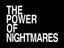 The Power of Nightmares: The Rise of the Politics of Fear is a BBC television documentary series by Adam Curtis. It mainly consists of archive footage, with Curtis narrating. The series was originally broadcast in the United Kingdom in 2004.[1] It has subsequently been aired in multiple countries and shown at various film festivals, including the 2005 Cannes Film Festival.