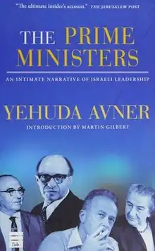 The Prime Ministers: An Intimate Narrative of Israeli Leadership is a 2010 book written by Yehuda Avner and published by Toby Press. It documented events related to 4 Israeli prime ministers—Levi Eshkol, Golda Meir, Yitzhak Rabin and Menachem Begin. It was first published in Israel on 15 March 2010 and a wider publication was done on 1 September 2010. The book was well received by critics and was one of the finalists for the 2010 National Jewish Book Awards. In 2013, Moriah Films, the film division of the Simon Wiesenthal Center produced a two-part documentary based on the book that features Avner as the narrator, and Hollywood actors as the voices of Israel's prime ministers.