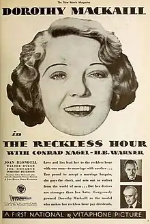 The Reckless Hour is a 1931 American pre-Code drama film directed by John Francis Dillon and starring Dorothy Mackaill, Conrad Nagel, H.B. Warner and Joan Blondell. It was produced and distributed by First National Pictures, which was controlled by Warner Brothers.[1][2] It was based on the play Ambush by Arthur Richman.