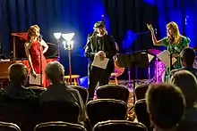 The Red Jacket Jamboree is a throw back radio variety show which is offered to American public radio networks[1] through PRX Radio Exchange. Hosted by Lena Dorey and Martin Achatz, two-time Poet Laureate of the Upper Peninsula,[2][3] the show shares stories, music, history and comedy that revolves around life in Michigan's Upper Peninsula,[4] especially that of the Keweenaw Peninsula, also known as Michigan's Copper Country. The show is recorded in front of a live audience at venues within the Keweenaw Peninsula for later radio broadcast. The show is named after Red Jacket, the original name for the village of Calumet, Michigan, where the show is headquartered.