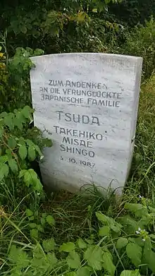 The script is based on real incident: Father, mother and daughter of the japanese family Tsuda were killed October 4, 1987 in a hit-and-run accident on Bundesstrasse 17, near the "Red Spot" shown on maps in the movie. Only the little son of the japanese family survived. The accident perpetrator fled the scene and was never found, the little boy grew up with japanese relatives. There is a memorial stone by the street where the accident once happened. The memorial stone shown in the film is a different stone, having the same text, but different dates and names on it.