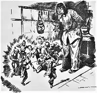 This time he knows what to do. With an offering of tobacco and a chant in bad Seneca, he summons the Gahunga and threatens them with retribution from Eitsinoha, the Iroquois earth goddess for their misbehavior. The Gahunga are cowed and promise not to do anything more unless he tells them to. As a result of his aid Hathaway is able to wrangle a lower rent from Pringle, who is also his landlord. He begins to think the medicine man business may not be so bad after all—maybe it has commercial possibilities!