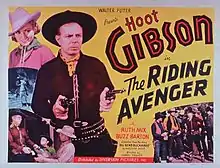 The Riding Avenger is a 1936 American Western film directed by Harry L. Fraser and starring Hoot Gibson, Ruth Mix and June Gale.[1] Originally made by Diversion Pictures, it was picked up for distribution by Grand National Pictures.