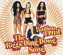 "The Rigga Ding Dong Song" is the debut single by the German Eurodance group Passion Fruit, released in 1999. The song is the group's most successful hit, reaching the top 10 in several countries, including Germany, Austria and Switzerland and the top 20 in the Netherlands. The first generation line-up can be seen in the single's cover sleeve and music video.[1] The vocals and rapping verses for the song were done by Leticia Spormann and Kenneth Clemmons.