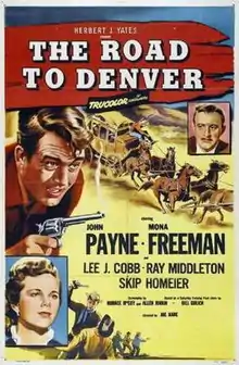 The Road to Denver is a 1955 American Western film directed by Joseph Kane starring John Payne, Mona Freeman, Lee J. Cobb, Ray Middleton and Skip Homeier.[1][2][3] The supporting cast features Lee Van Cleef, Andy Clyde, Glenn Strange and Emory Parnell.