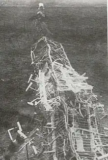 ![]() The Roc'h Trédudon transmitter on the ground after the attack. | |