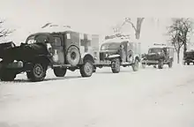 Ambulances in the snow in Alsace, January 1945. Photo courtesy of Musée de la Libération.