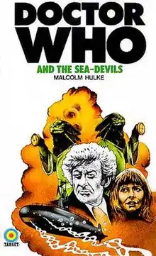 A novelisation of this serial, written by Malcolm Hulke, was published by Target Books in October 1974 and was originally to be titled The Sea Monsters. There are, as usual with Hulke, many added sections—including an ironic death for Trenchard as he makes a last stand against the Sea Devils and forgets to take the safety catch off his pistol. Also, the Master makes reference to his alliance with the Ogrons in the later serial Frontier in Space (also written by Hulke). A Portuguese translation was published in 1983.