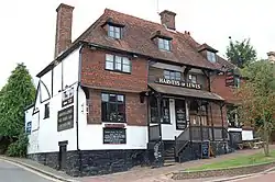 Built in about 1400 as a Wealden hall house in traditional Wealden timber frame, the building is Grade II* Listed.[1] It was altered in the 16th century and re-faced in the 19th century. It has a recessed centre, with curved timber brackets supporting the eaves. The first floor oversails on brackets, and has a Crown-post-supported roof.[2] Owned by Harveys, a brewery in Lewes, since February 2002,[3] the pub has existed in its current form for at least 300 years.
