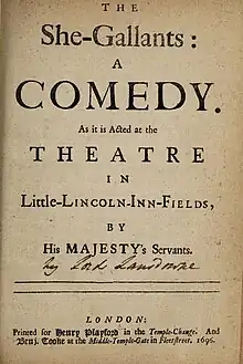 The She-Gallants is a 1695 comedy play by the English writer George Granville. It was first staged by Thomas Betterton's Company at the Lincoln's Inn Fields Theatre in London.