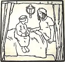 ![]() "Look, mother, my shroud is nearly dry" - illustration by Otto Ubbelohde (c1893) | |