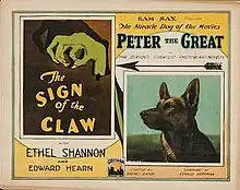 The Sign of the Claw is a 1926 American silent action film directed by B. Reeves Eason and starring Ethel Shannon, Edward Hearn and Lee Shumway.[1] Produced by the independent Gotham Pictures, it was designed as a vehicle for Peter the Great, one of several dog stars to appear in films during the 1920s.