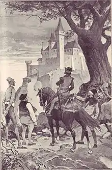 ![]() The prince arriving at the castle. | |