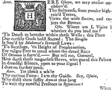 Like other plays set in Ottoman courts there may have been subtle parallels with contemporary British politics, particularly the divisions between George I and his son George, Prince of Wales. More strongly the play references the ongoing Austro-Turkish War and the role of Prince Eugene of Savoy who later that year won a major victory at the Siege of Belgrade.[3]