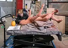 A campaign to restore the sculpture raised £15,000 in 5 days, with contributions from the Heritage Lottery Fund, NESTA and the Department for Culture, Media and Sport. The work was restored by Tessa Jackson of Jackson Sculpture Conservation Ltd.[5] After restoration, it returned to the Southbank Centre, and was displayed in public at the Royal Festival Hall for three years.[6][7] In August 2020, the sculpture was put on public display for five years at London Waterloo, a major railway terminus. The new site is closer to the (now demolished) wall that the sculpture was mounted during the Festival of Britain.[1][8]