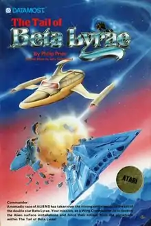 The Tail of Beta Lyrae is a horizontally scrolling shooter written by Philip Price for the Atari 8-bit family and published in 1983 by Datamost. The music is by Gary Gilbertson. Price and Gilbertson later collaborated on the Alternate Reality games.[1]