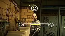 Players also must avoid being disrupted by police, who will arrive in a police car seen from a window outside the restroom. They must also avoid undercover police, who will induce the player into sex more quickly and be accompanied by a police car. If a player reaches the stage of getting a man to reveal their weapon, police will enter the restroom. When this occurs, the player's progress of collecting weapons resets to zero.[1] 23 per cent of the men the player interacts with in the game will be undercover.[3]