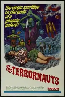 The Terrornauts is a 1967 British science fiction film directed by Montgomery Tully and starring Simon Oates and Zena Marshall. It was produced by Amicus Productions and based on the 1960 novel The Wailing Asteroid by Murray Leinster, adapted for screen by John Brunner.[2] Space scientists foil an alien invasion of Earth.