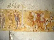 The theme of the "Three Living and the Three Dead" is a relatively common form of memento mori in mediaeval art.[1] The earliest manuscript evidence for the story comes from late 13th-century France.[2] A Dit des trois morts et des trois vifs by Baudoin de Condé has been traced back to 1280.