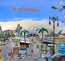 The Unfairground is a 2007 album by Kevin Ayers, recorded with members of Ladybug Transistor, Teenage Fanclub, Neutral Milk Hotel, Gorky's Zygotic Mynci and Roxy Music.[8] It was his sixteenth studio LP and his first new set of recordings in fifteen years, as well as the last album released before his death in 2013. It was recorded in New York City; Tucson, Arizona; London; and Glasgow.[9] It debuted at No. 14 in the UK Indie Album chart.
