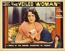 The Veiled Woman is a 1929 American silent drama film directed by Emmett J. Flynn and starring Lia Torá, Lupita Tovar and Walter McGrail, also featuring Bela Lugosi.[1] This film was initially advertised as being a sound film, but at the last minute, the producer decided to film it as a silent instead.