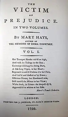 The Victim of Prejudice is a novel by the English novelist Mary Hays. Published in 1799, it is Hays' second novel.