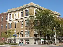 The Vienna is a historic apartment building located at Indianapolis, Indiana. It was built in 1908, and is a three-story, nine bay by seven bay, Classical Revival style yellow brick and grey limestone building. It sits on a rusticated raised basement and has six Tuscan order pilasters. It features projecting pedimented corner pavilions.[2]: Part 2, p. 30–31