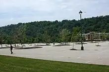 ![]() The stacks from the soaking pits of the 36-inch rolling mill of US Steel's Homestead Works, left to pay homage to the complex's former use as a steel mill | |
