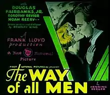 The Way of All Men is a 1930 American Pre-Code drama film directed by Frank Lloyd and starring Douglas Fairbanks Jr., Dorothy Revier and Noah Beery. It was produced and released by First National Pictures, a subsidiary of Warner Bros. The film was based on the story entitled "The Sin Flood", by Henning Berger and appeared as a silent in 1922 also directed by Frank Lloyd. In 1931, the studio remade the film in German as The Mask Falls.[1]