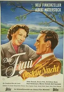 The Woman from Last Night (German: Die Frau von gestern Nacht) is a 1950 West German comedy film directed by Arthur Maria Rabenalt and starring Heli Finkenzeller, Albert Matterstock, and Hilde Sessak.[1] It was shot at the Tempelhof Studios in West Berlin. The film's sets were designed by the art director Gabriel Pellon.